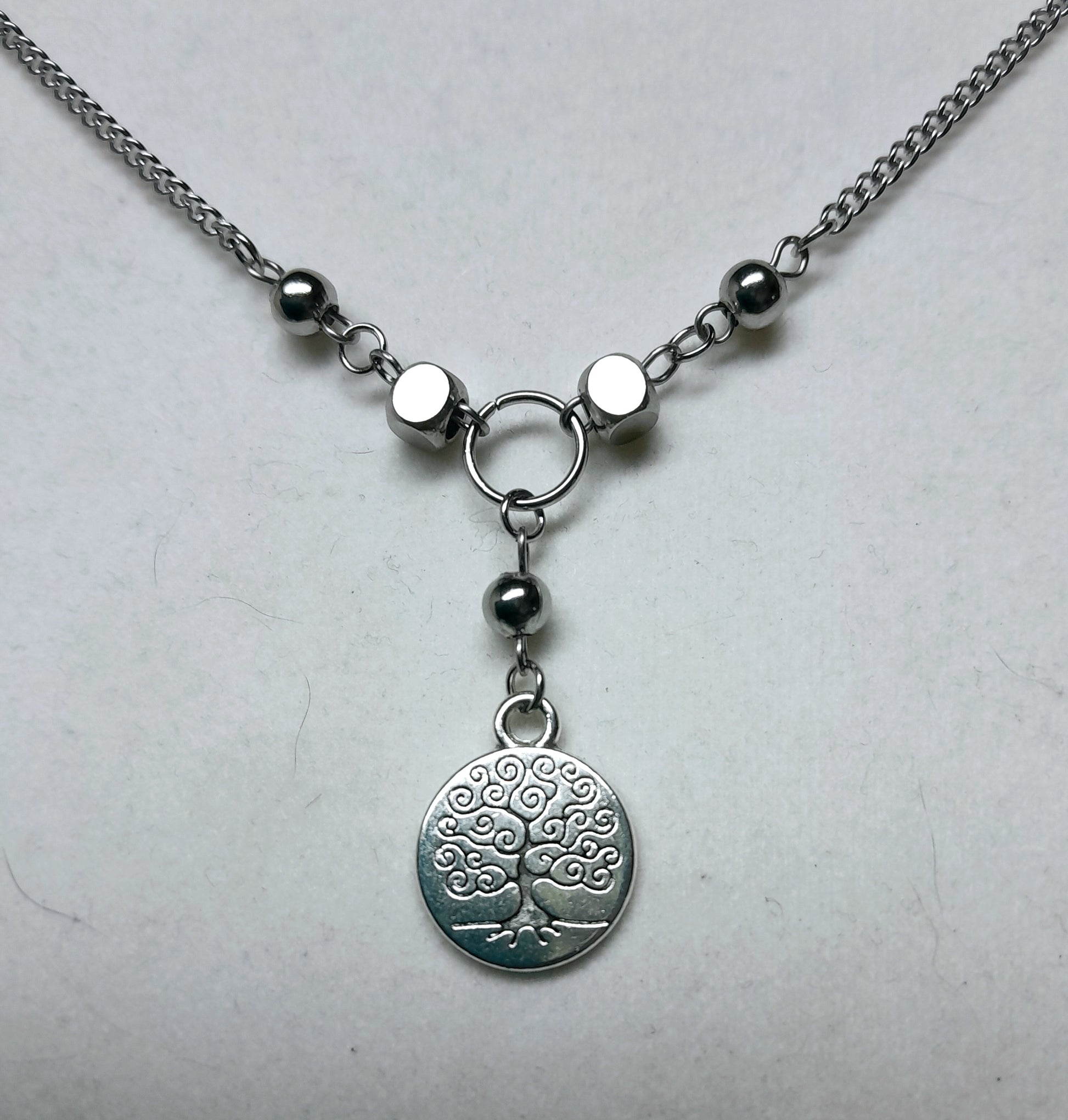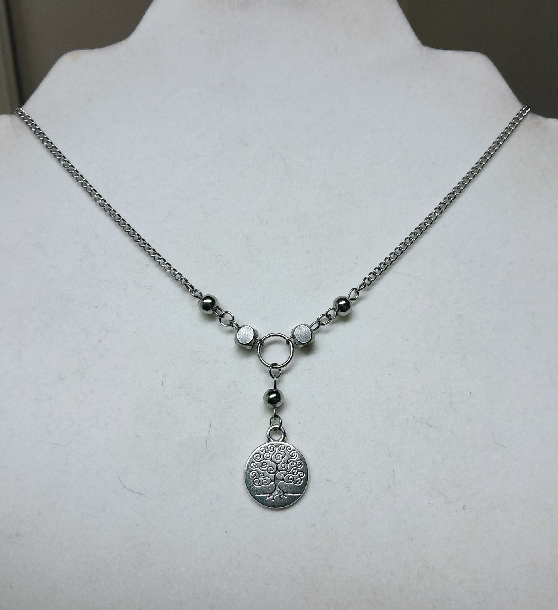 Collier court en acier inoxydable entièrement fait d'acier inoxydable hypoallergene et son petit arbre de vie ! 18 pouces de longueur